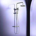 Устройство: душевая система • Смеситель: термостатический • Ручной душ (душевая лейка): размер 120 мм, настройки 1 шт • Верхний душ (тропический): размер 230 мм, настройки 1 шт • Комплектация: ручной душ, верхний душ, смеситель, стойка, шланг, крепление ручного душа